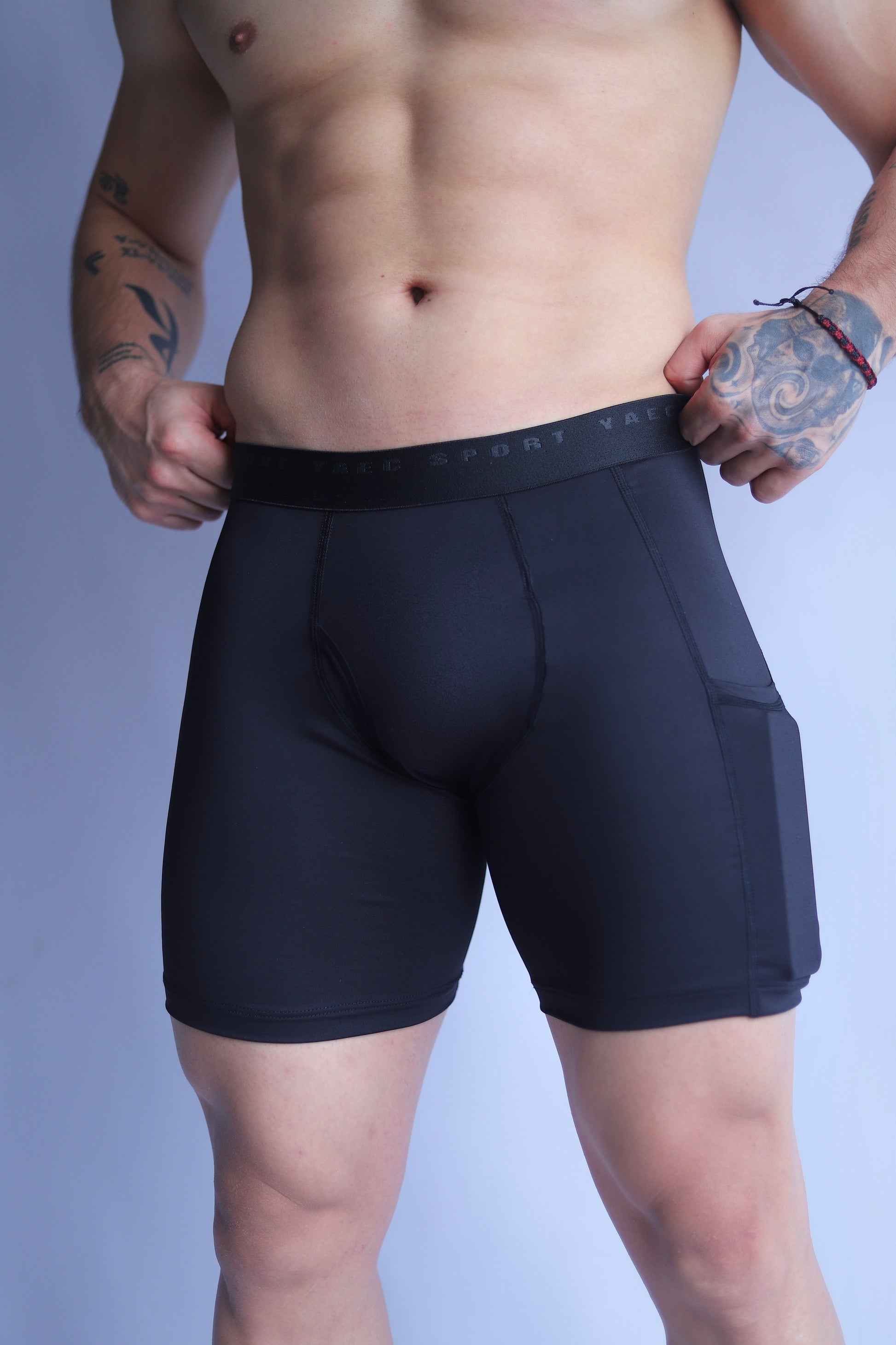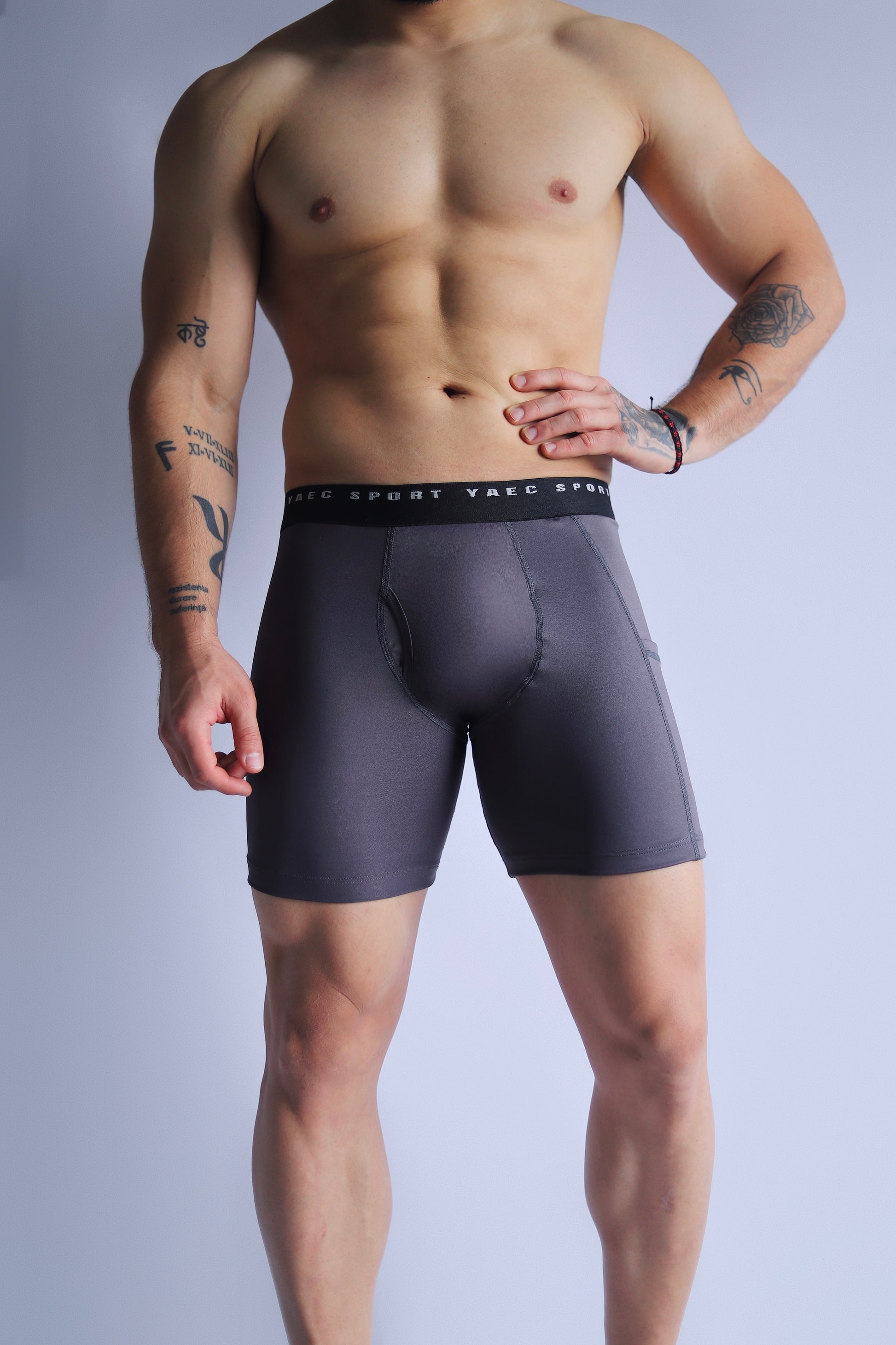 Comodidad, rendimiento y funcionalidad en una sola prenda. Nuestro bóxer deportivo de compresión ofrece un ajuste ceñido y elástico que se adapta a cada movimiento. Su tejido transpirable y de secado rápido mantiene la piel fresca y seca en todo momento. Además, cuenta con un bolsillo lateral para mayor practicidad, ideal para llevar tu celular o llaves mientras entrenas. La pretina elástica con logo ‘YAEC SPORT’ ofrece sujeción sin sacrificar comodidad.