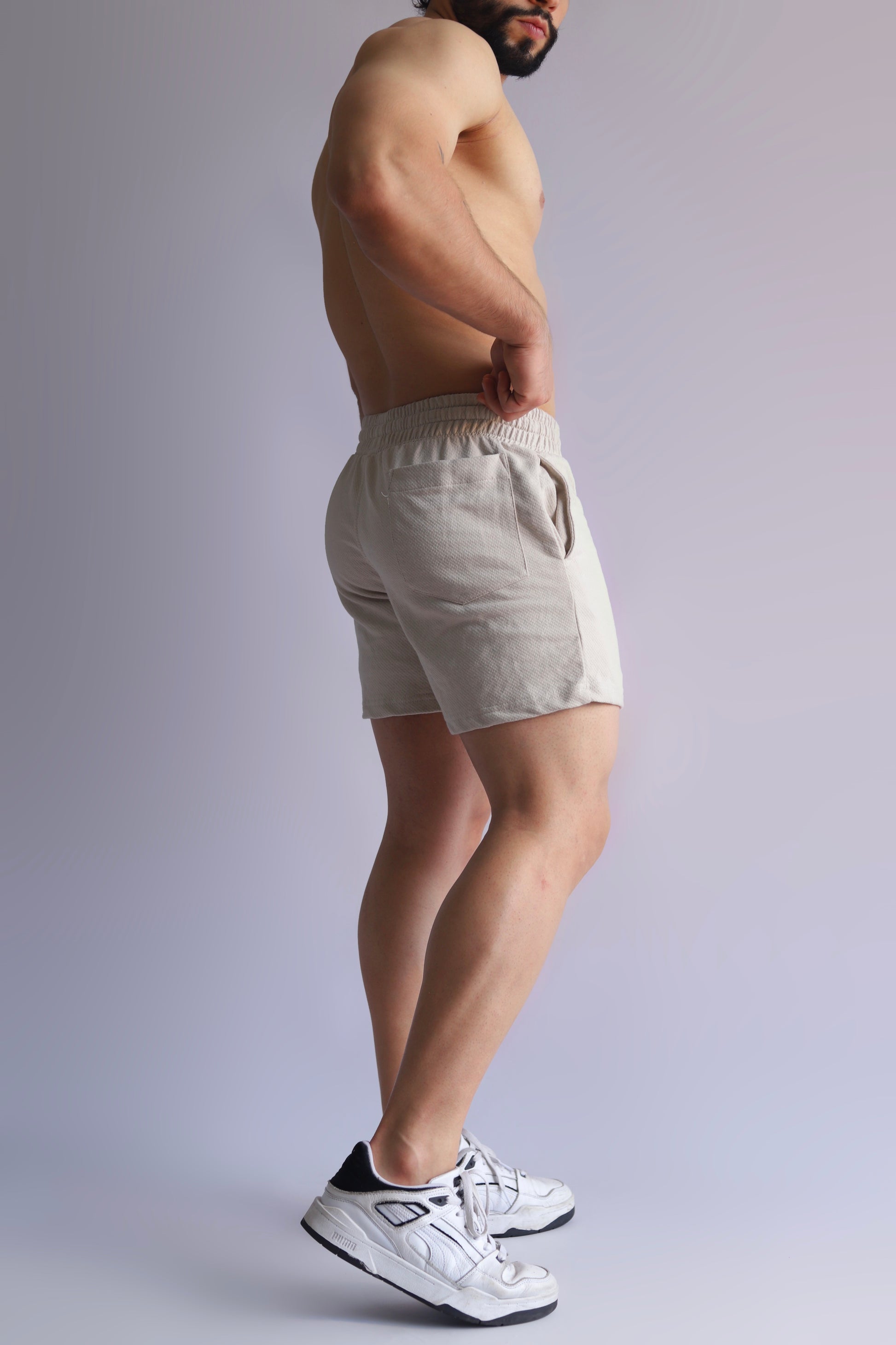 Este short deportivo es una prenda clásica y resistente, confeccionada con tela burda de alto impacto que garantiza durabilidad y comodidad. Su tejido elástico permite una gran libertad de movimiento, ideal para entrenamientos intensos o uso casual.