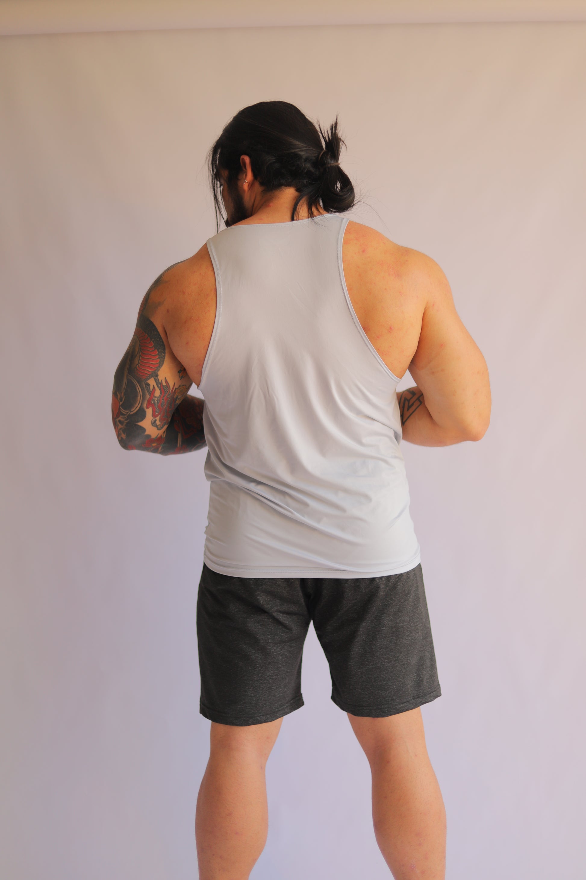 Este tank está confeccionado en tela licrada de alta elasticidad, ofreciendo un ajuste ligeramente ceñido para mayor comodidad y libertad de movimiento. Su corte en la espalda permite una ventilación óptima y resalta la musculatura, convirtiéndolo en una prenda ideal para entrenamientos de alta intensidad o para lucir un estilo deportivo.
