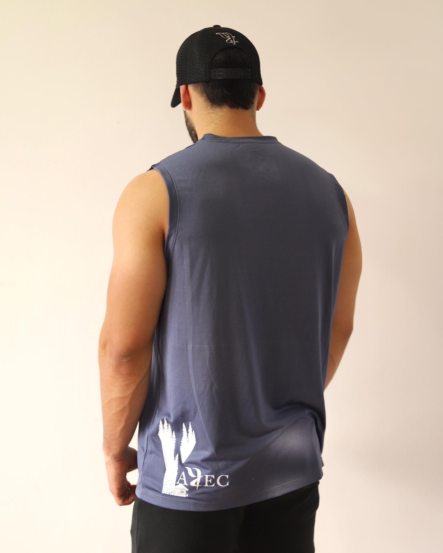 Este tank está confeccionado en tela de malla deportiva, brindando gran transpirabilidad y una sensación de frescura ideal para entrenamientos intensos o días calurosos. Su corte sin mangas ofrece libertad de movimiento, mientras que el estampado en la parte posterior añade un toque distintivo y moderno.